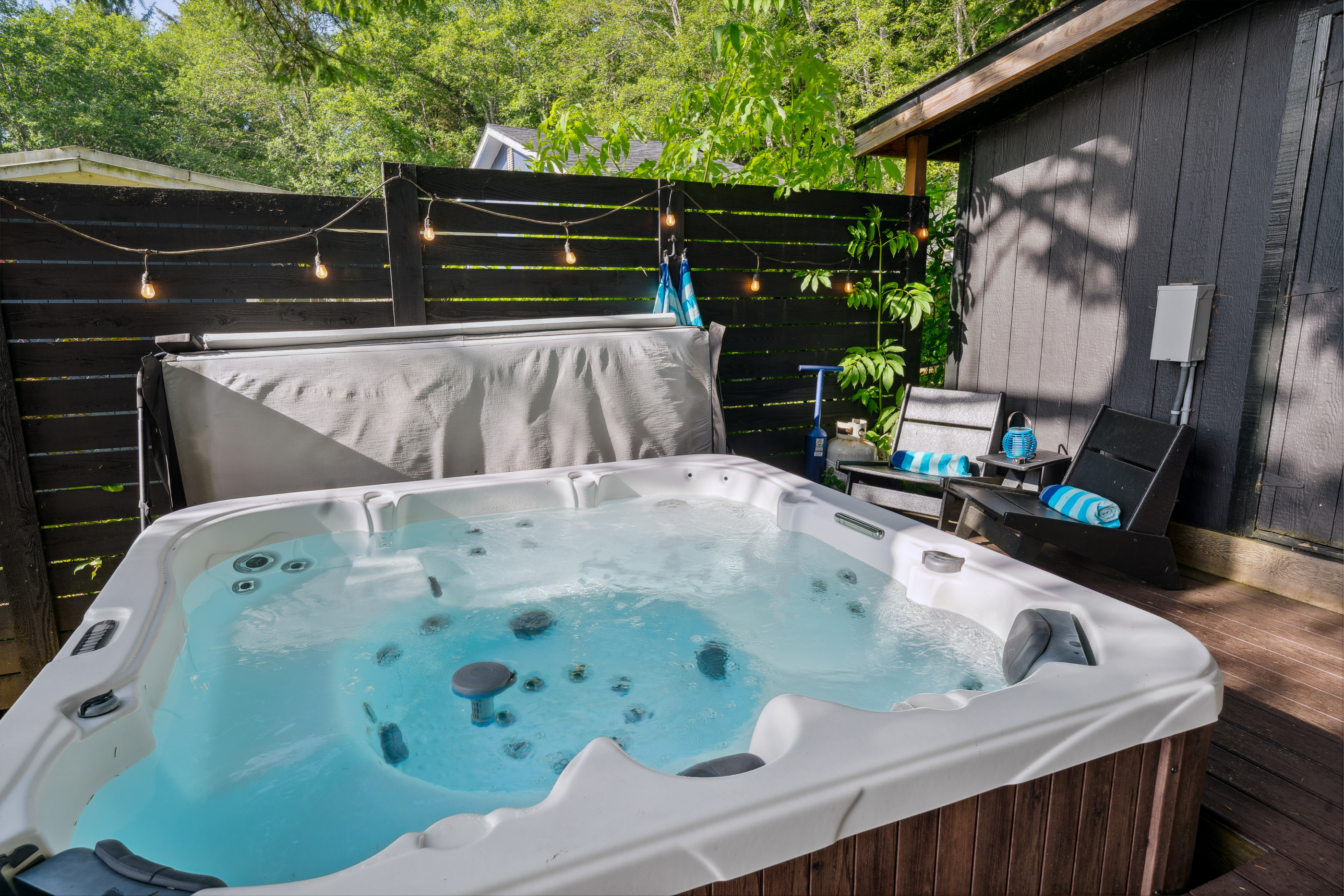 Relax and enjoy the hot tub with family and friends — it’s one of the best ways to unwind after a day at the beach or on the trails.